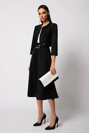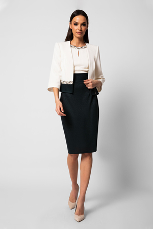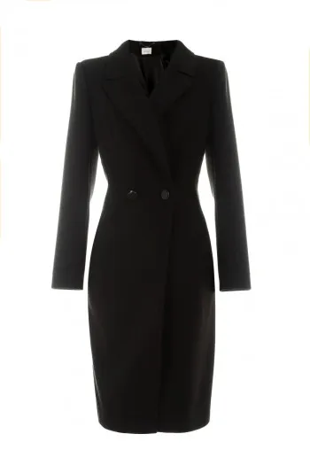 An elegant short coat with double-breasted fastening and a tie belt that can be worn in tw...