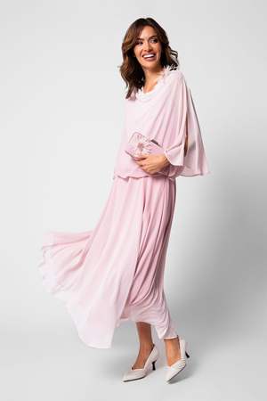 The striking pink coat with faux fur around the neck adds a touch of sophistication to you...