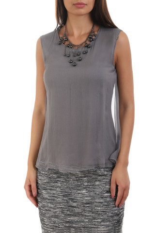 Elegant silk sleeveless blouse with viscose lining.