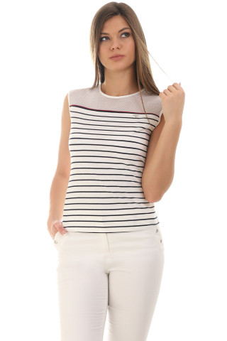 The striped viscose sleeveless shirt is ideal for warm days. The natural material is pleasing to the skin and provides perfect comfort even after prolonged wear. The model follows the body line but adapts very easily to your body thanks to the high percentage of elastin. You can combine it with both sporty and more formal models.