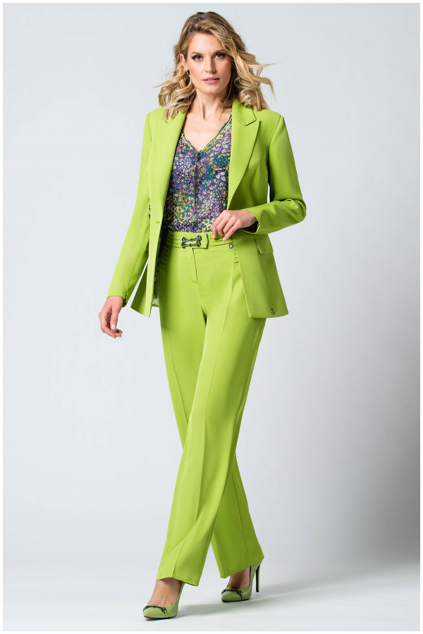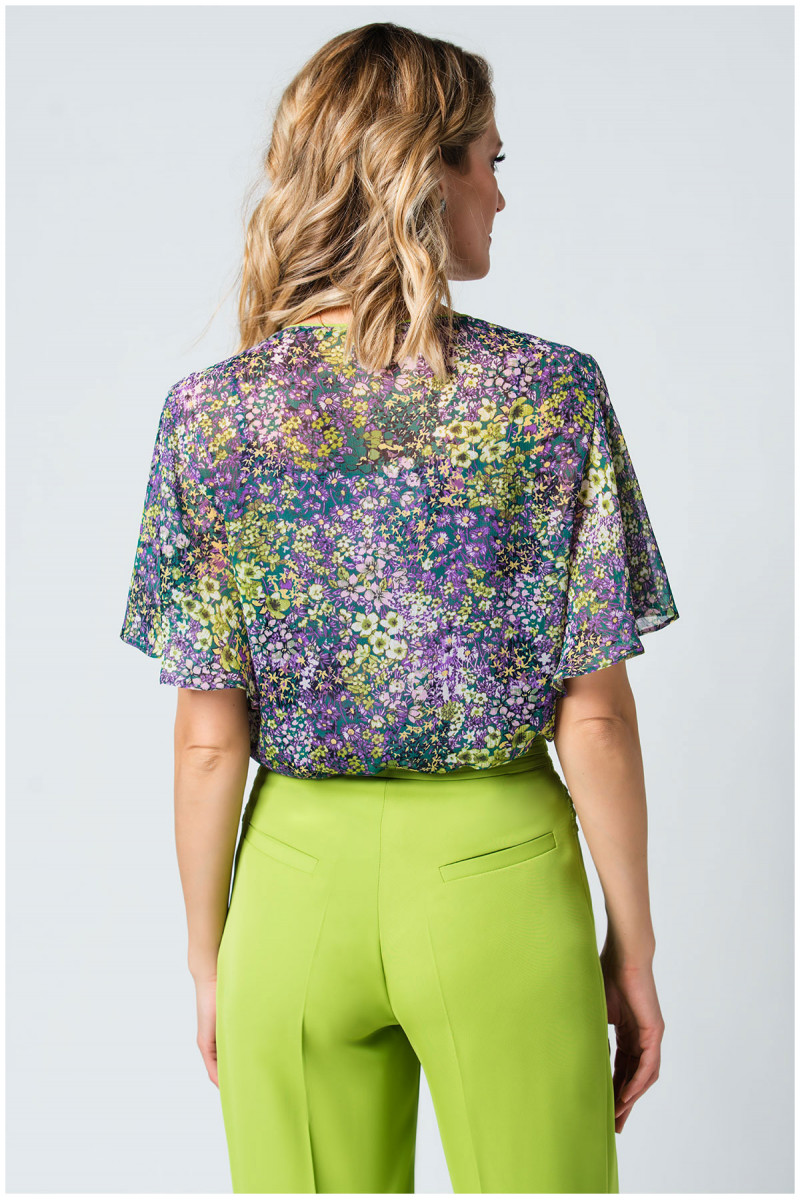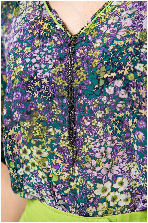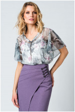 A two-piece set with a floral pattern is suitable for both everyday and elegant outfits. The viscose lining makes it very comfortable on the skin. It is enhanced with anthracite details around the neckline.