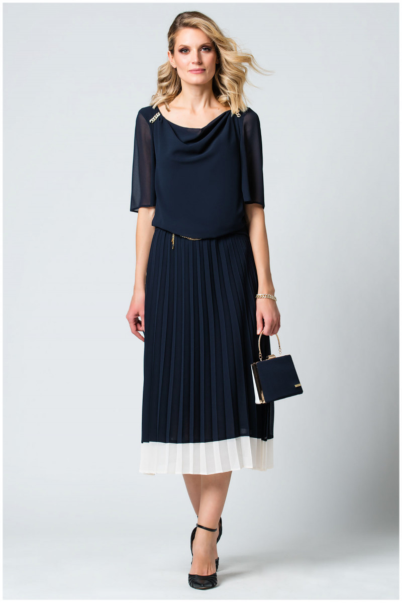 Long pleated skirt with a modern cut that you can pair with a blouse from the same line to...