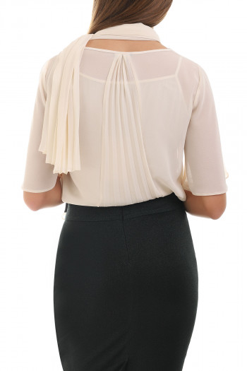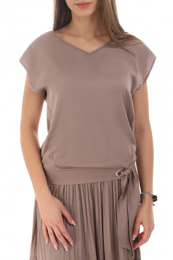 An elegant set with pleats in the neckline area and sheer sleeves is ideal for warmer days...