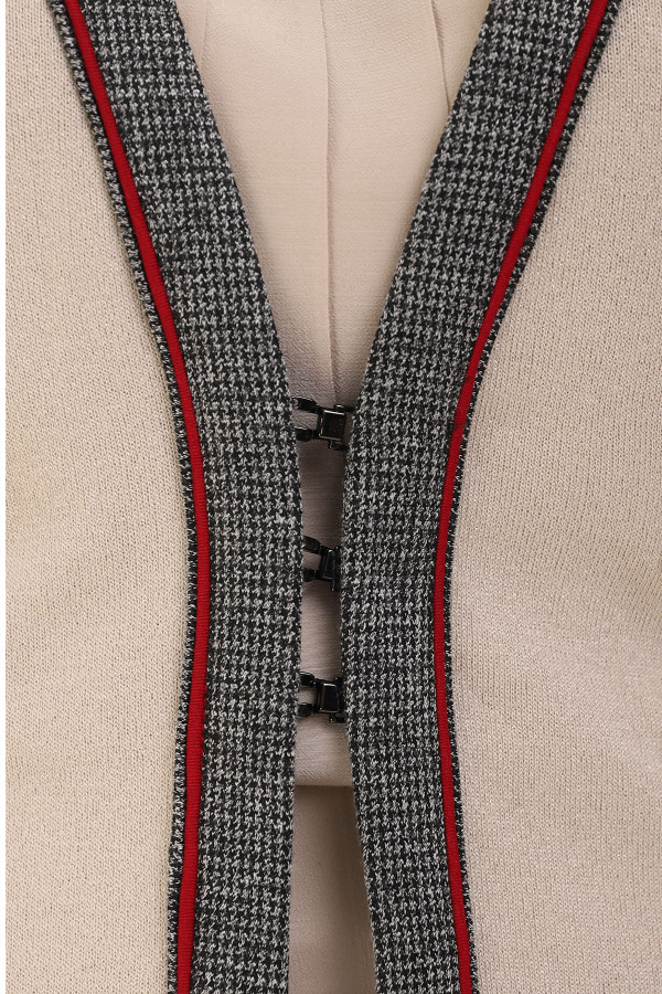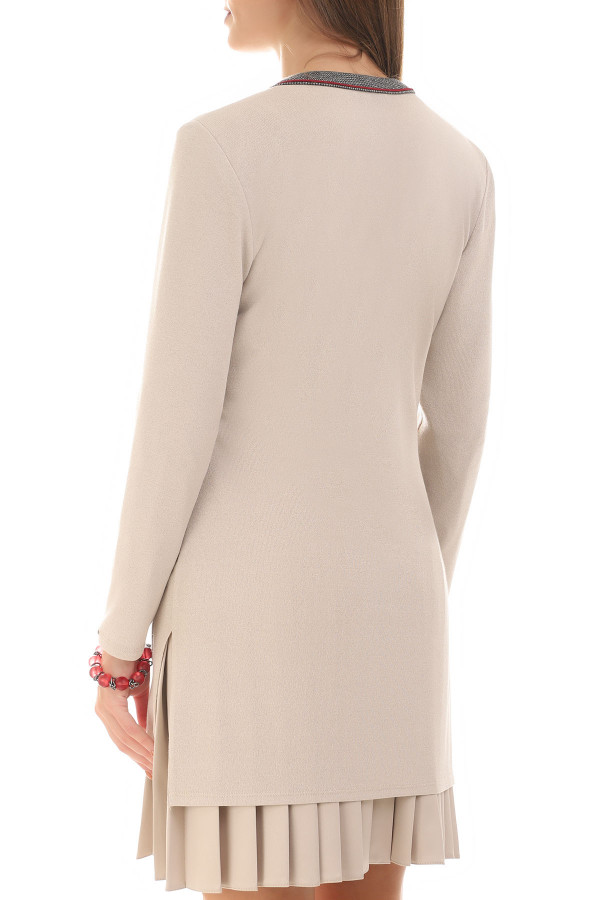 This beige cardigan is wearable in various occasions that follow the life rhythm of successful ladies. It is a great replacement for a blazer when comfort comes first. Metallized fibres give this model a special note of luxury. It easily fits with many LUNA models.