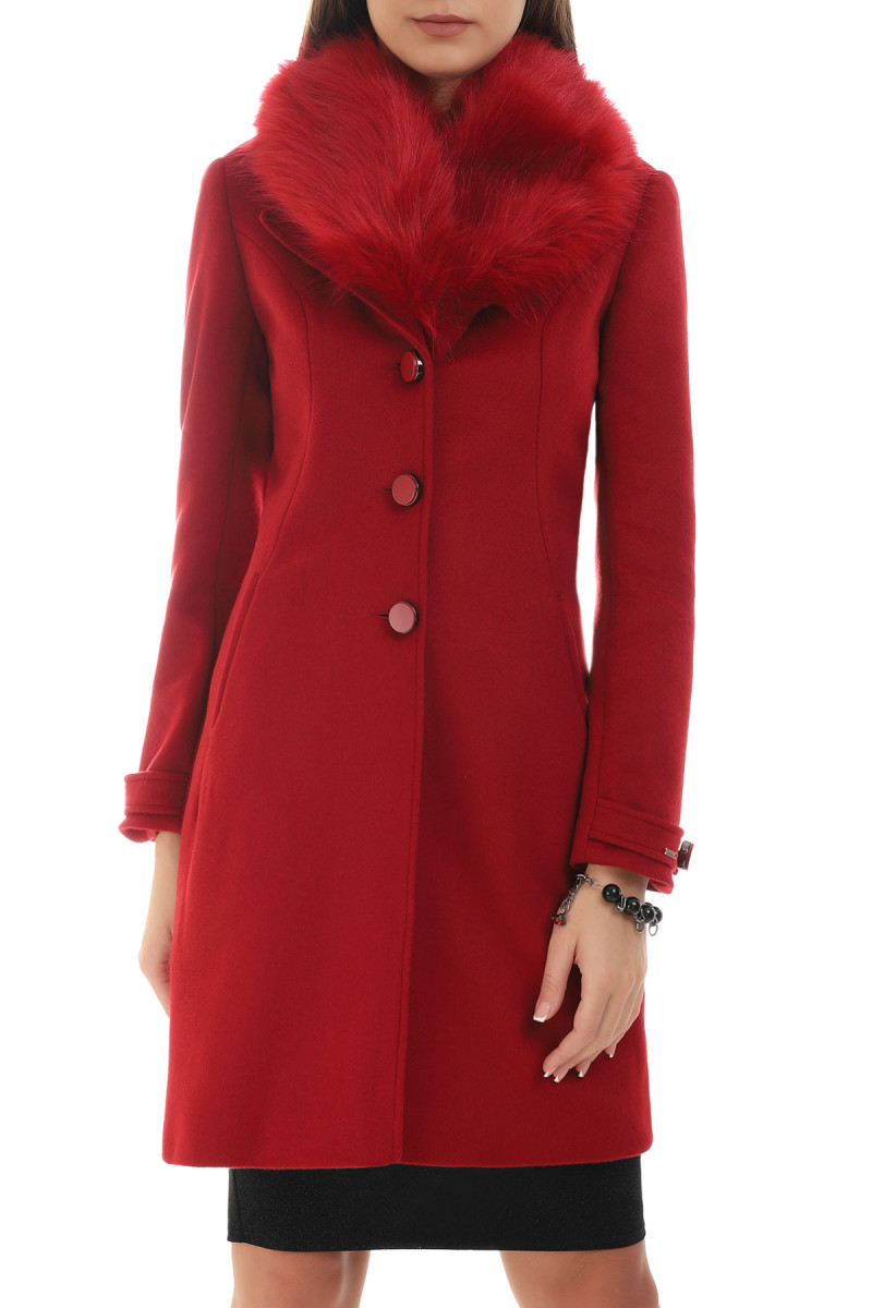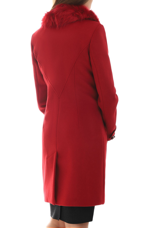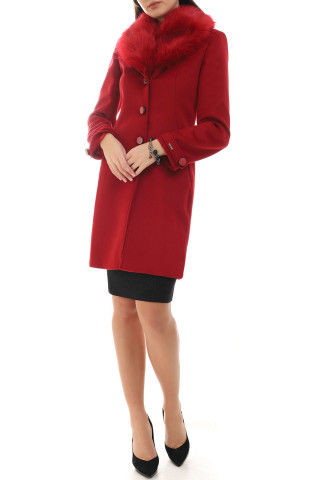 For ladies of classic style and refined taste, a timeless red coat that follows the line of your figure. The collar is adorned with removable faux fur. The model lengthens the figure and the red colour will make you be noticed wherever you appear. A slight slit will allow you to move easily. This coat will complement any winter outfit and make it more luxurious.