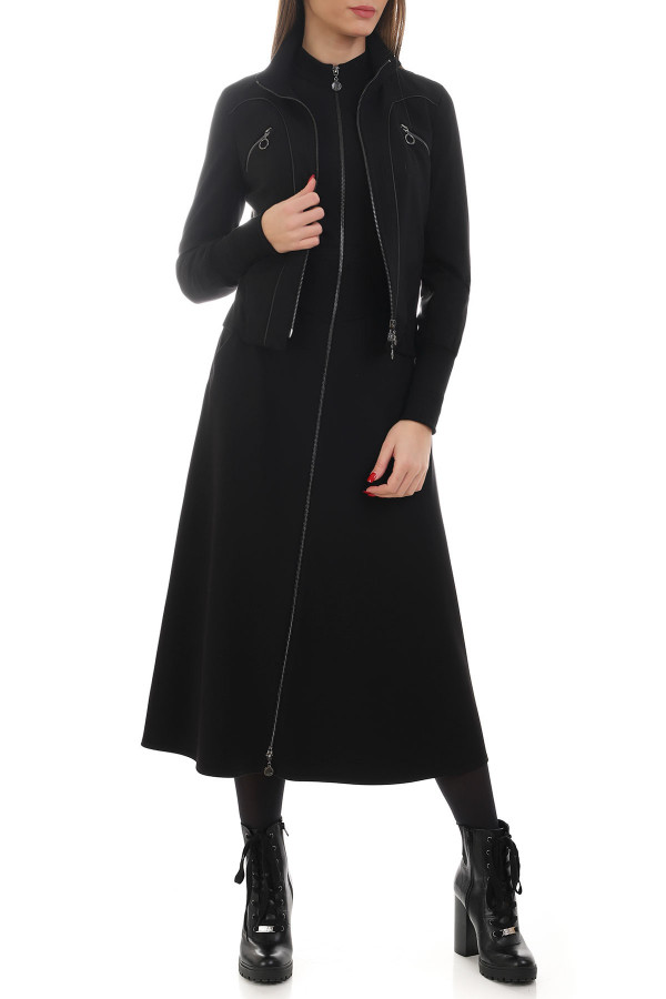 Long dress with a zipper and buttoning along the entire front part is made of a comfortable viscose fabric. The elastane in the composition of this fabric makes the dress impeccably comfortable, so it will be easily worn by all women, regardless of their body structure and the shape of the figure. It is suitable for both everyday relaxing and business occasions. You will not disturb its style, whether you wear it with high heels or sneakers.