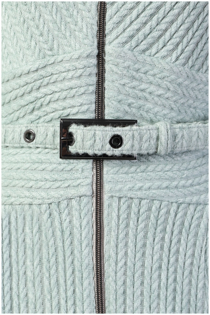Mint pink dress with a feminine A-line cut that fits perfectly for all body types. Viscose knit with elastane makes it very comfortable to wear. With the help of the two-way zipper, you can adjust the depth of the neckline and slit.