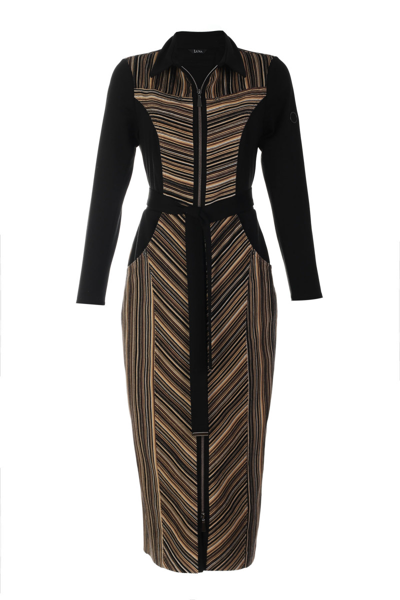 Tight velvet dress with a double zipper. The model is made of cotton with a viscose lining, making it comfortable to wear. The tie belt further accentuates the waist and can be removed if needed.