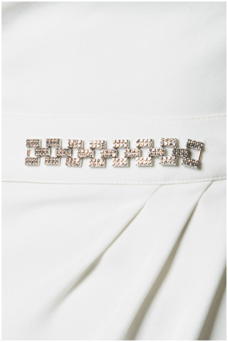 Elegant white dress made of thicker material with elastane perfectly fits all body types.