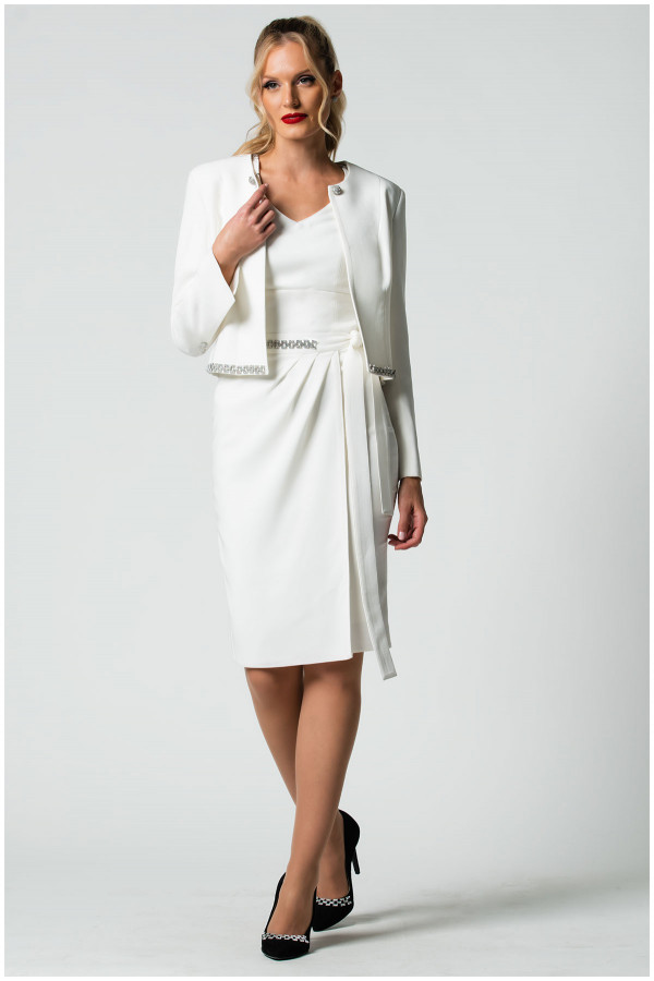 Elegant white dress made of thicker material with elastane perfectly fits all body types. It combines well with blazers and accessories from the same collection.
