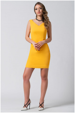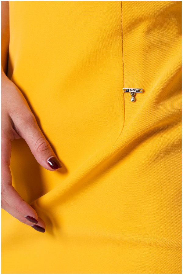 A classic slim-fit yellow dress that perfectly follows the line of your body. Combine it with a tailored short-sleeved jacket from the same collection and achieve an effective outfit.