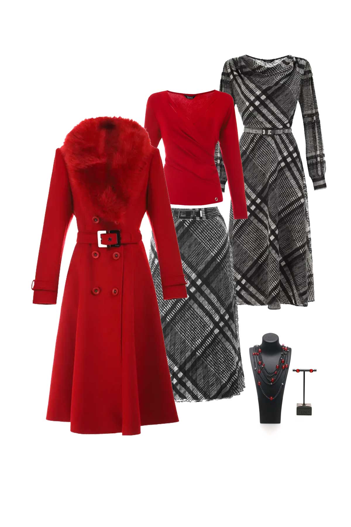 Red viscose blouse with an authentic design is an excellent basis for creating an outfit.