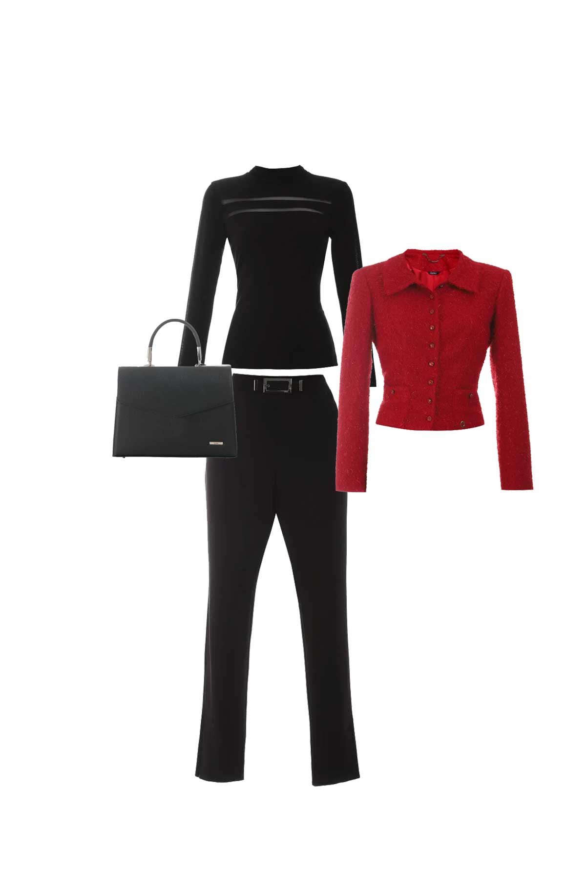 The effective red knitted waist cut jacket adds a touch of femininity to your outfits.
