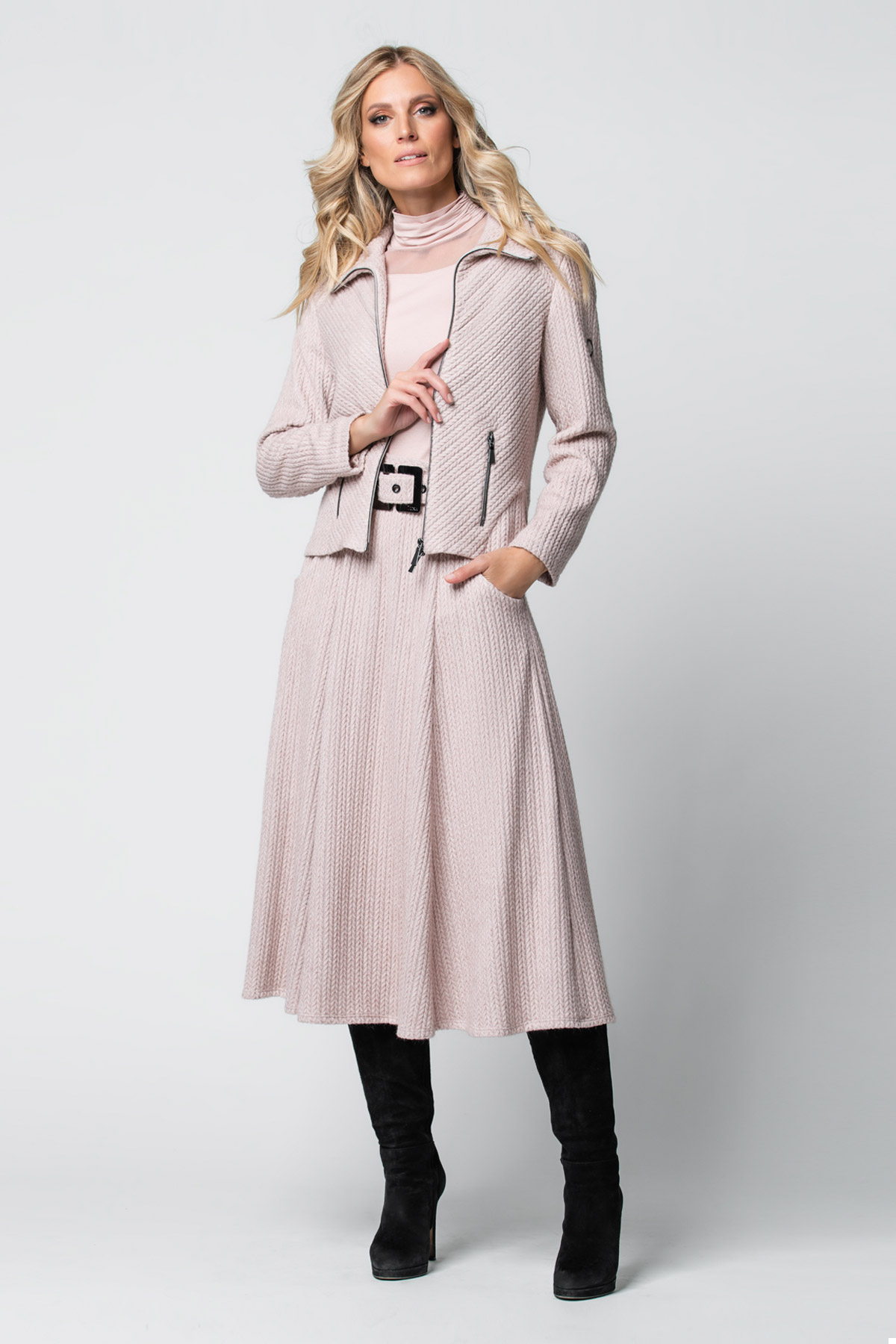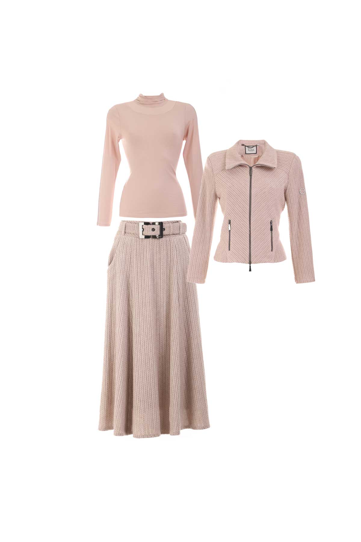 The long light pink, wide-cut skirt fits perfectly for all body types and is very comforta...