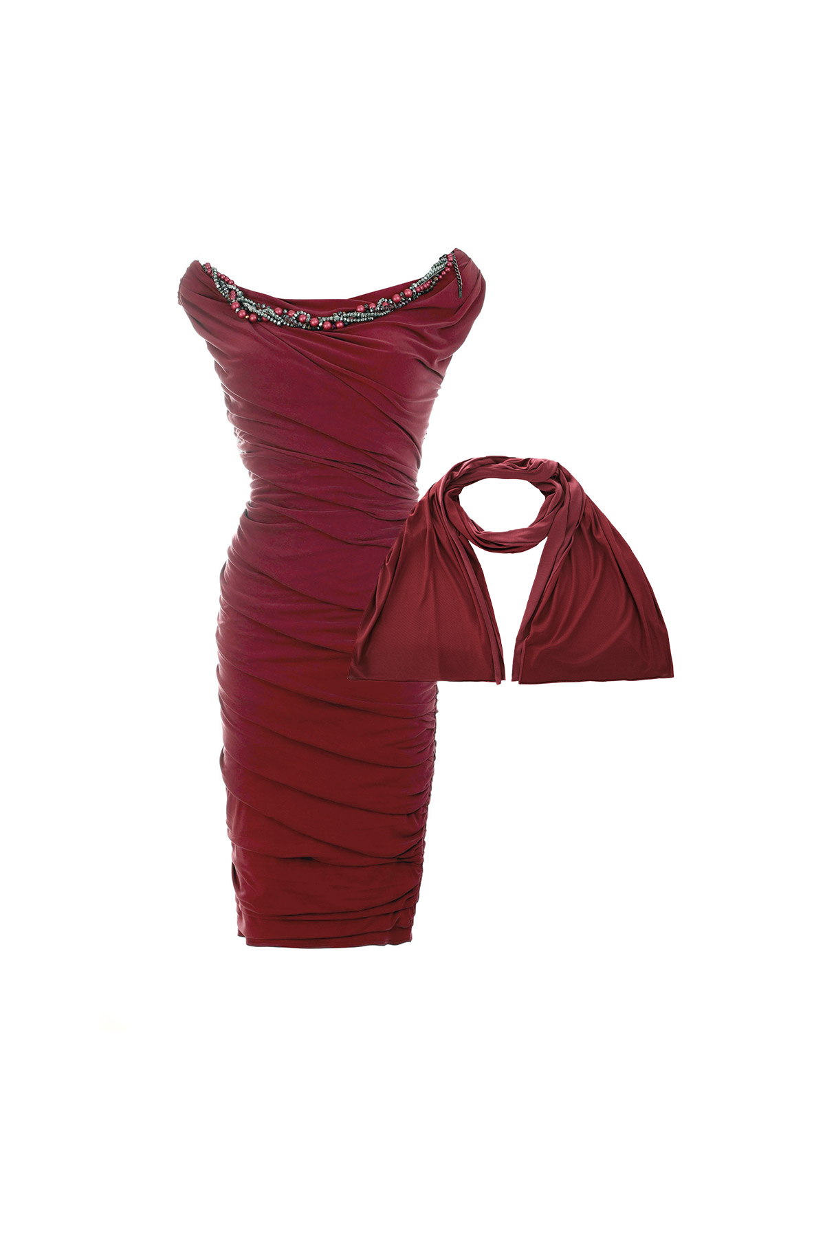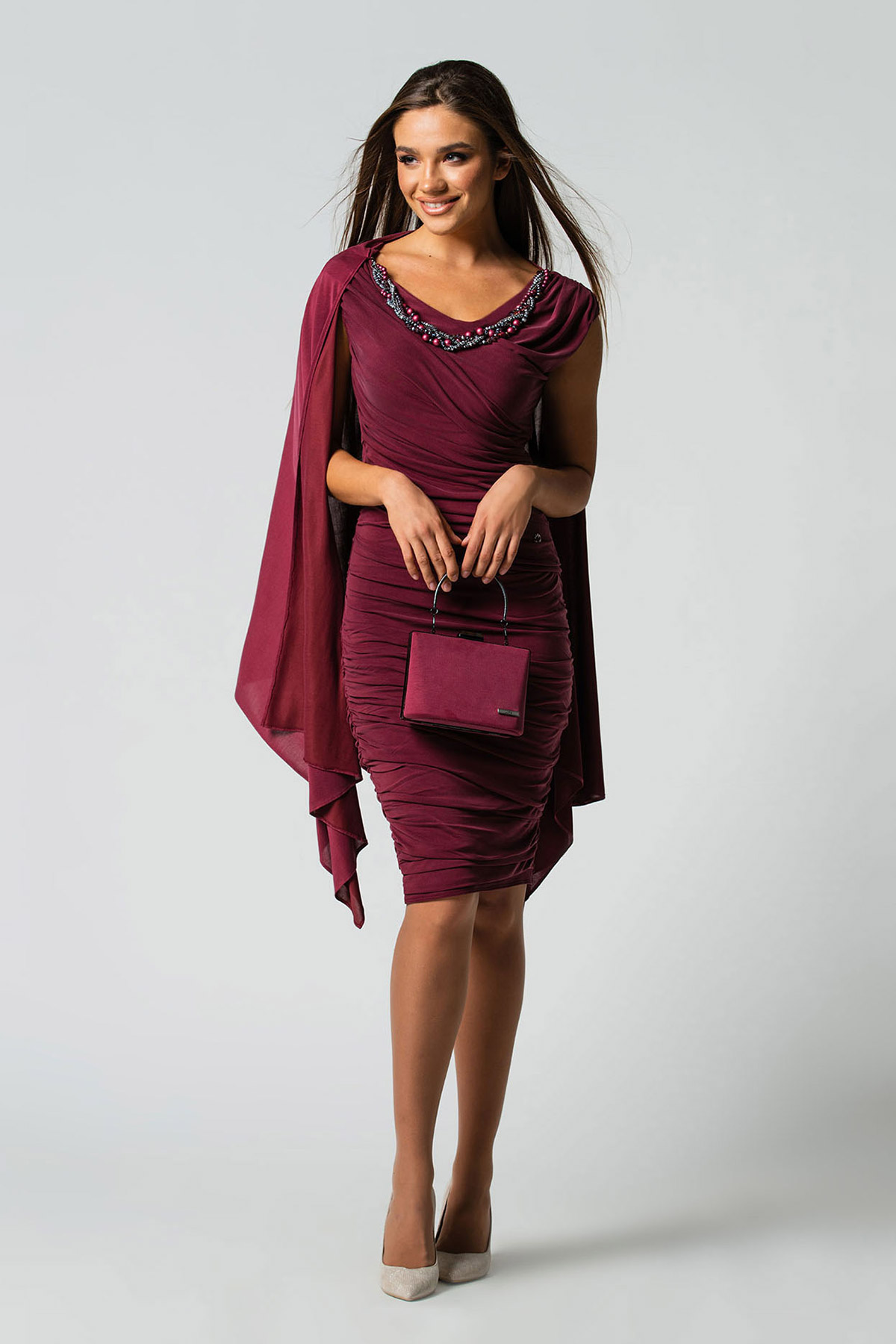 A tight burgundy knee-length dress is the right choice when you want to achieve a stunning...