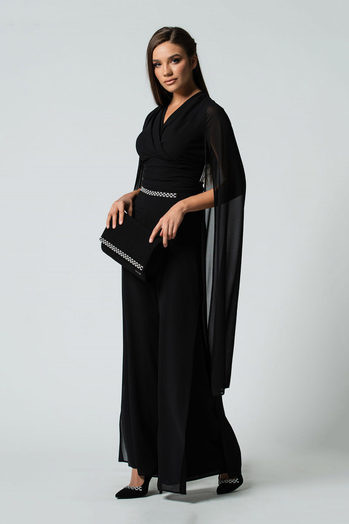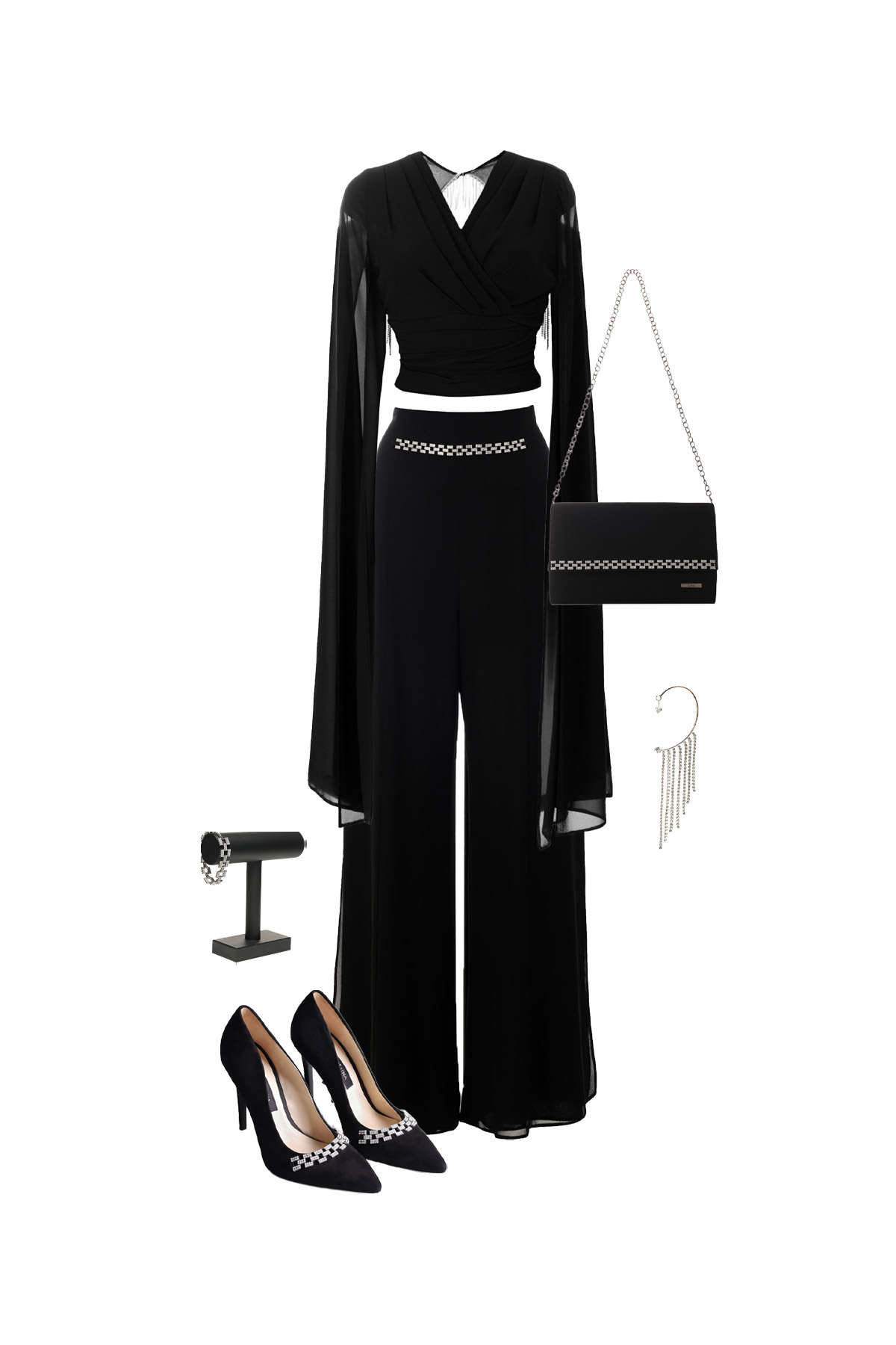 Feminine black blouse with an impactful design pairs perfectly with trousers and skirts fr...