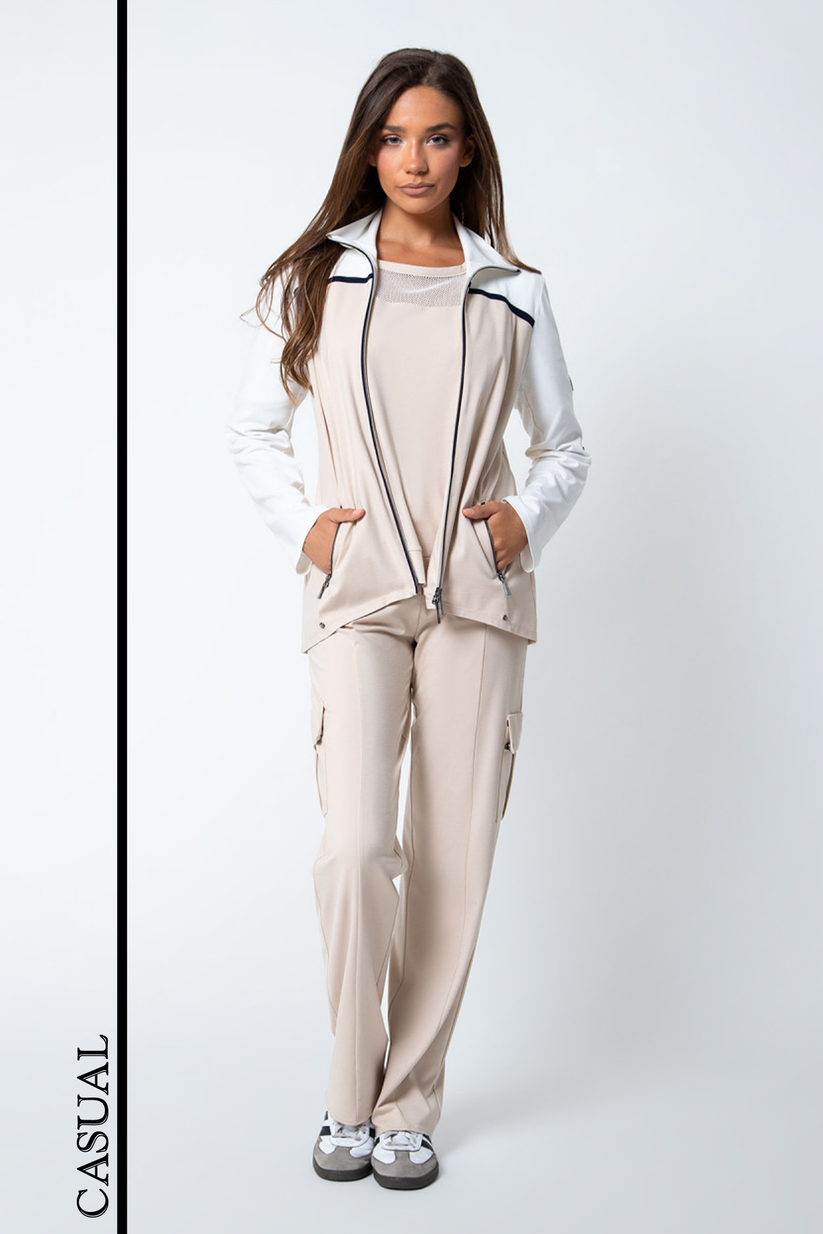Beige track pants with cargo pockets on the legs will provide you with a comfortable feel ...