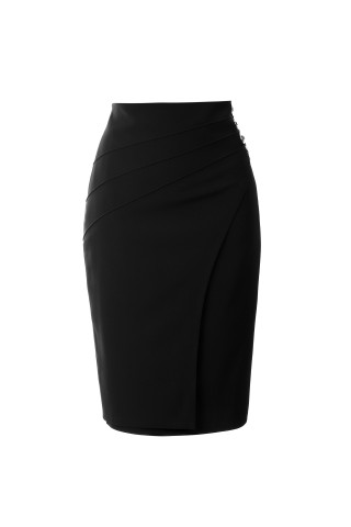 A slim straight-cut wrap skirt adorned with striking details on the side. The high percentage of viscose and elastane makes the model very comfortable to wear.