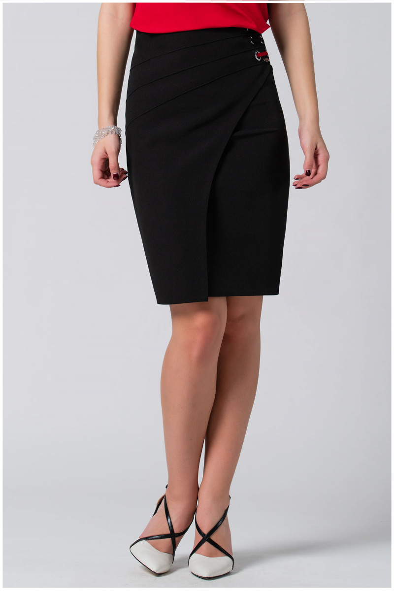 A slim straight-cut wrap skirt with high percentage of viscose and elastane that makes it very comfortable to wear.