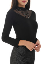 The unusual white turtleneck is made of a completely natural fabric, which will allow you to wear it comfortably. The addition of elastane will make it adaptable to everyone\'s body shape. The attractive transparent V neckline will add a touch of extravagance, so you can wear it for business and formal occasions. You can easily complete the turtleneck with many items of clothing.