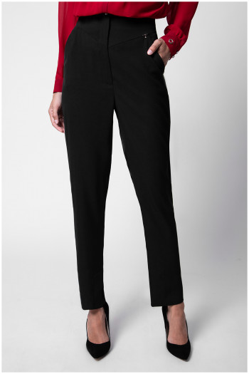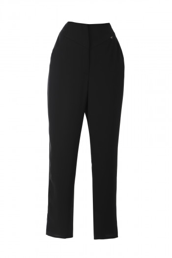 A viscose turtleneck crafted from a blend of viscose and elastane. The design is enhanced with transparent bands around the neckline and white stripes that add a unique charm. Perfect for both professional and everyday occasions.