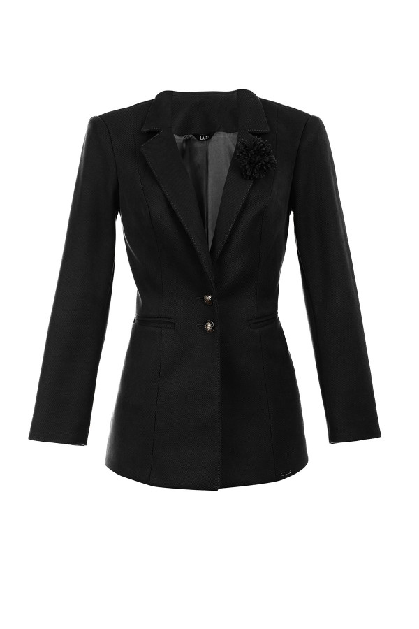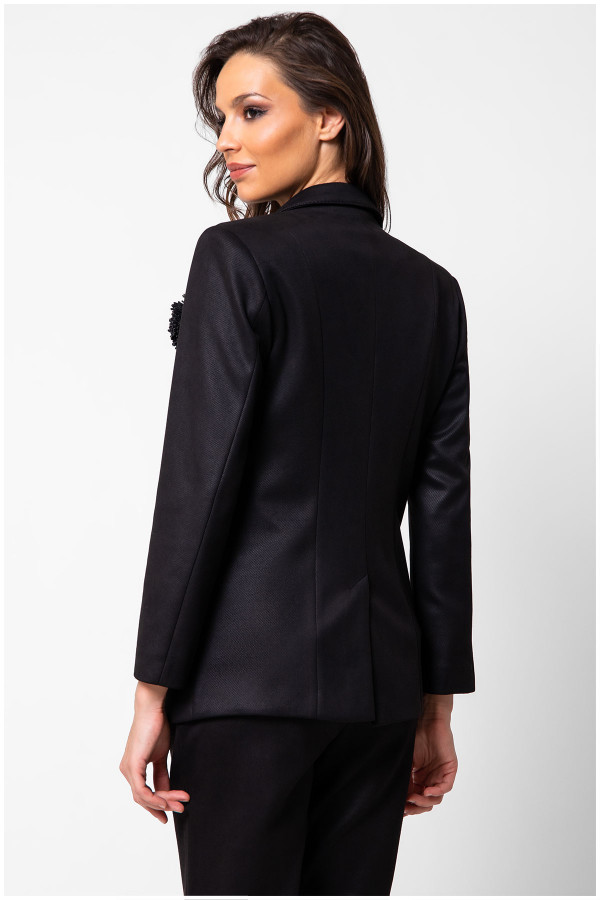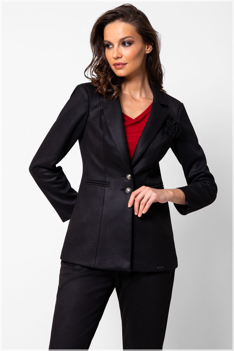 A tailored long-sleeve blazer in black that will add a special touch of elegance to your l...