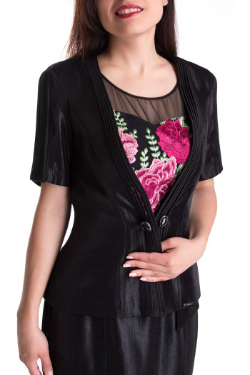 An elegant blackshort-cut blazer with 3/4 sleeves.
