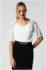 Elegant tunic with short sleeves is lined with a T-shirt made of viscose enriched with elastane, making it very comfortable to wear. The loose fit complements all body types.