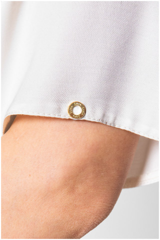 A white viscose tunic that is exceptionally comfortable to wear and effortlessly fits into any outfit. The neckline is adorned with a subtle V-cut for an elegant touch.