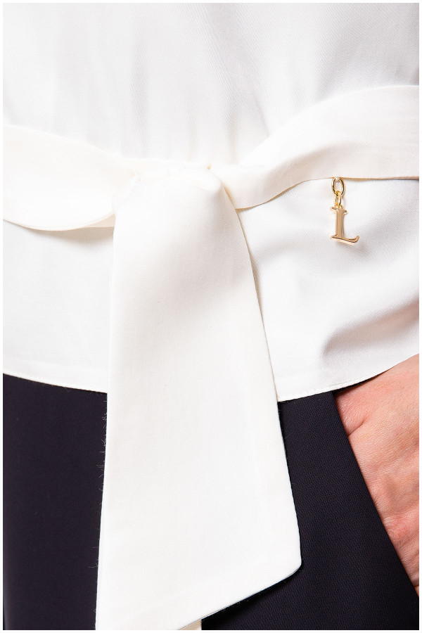 A white viscose short-sleeve blouse with an authentic pattern. The adjustable waist tie allows you to tailor the fit to your figure. It pairs beautifully with skirts and pants from the Luna collection.