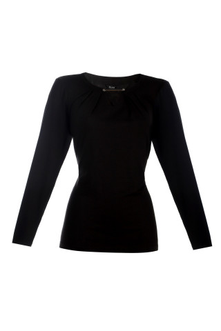 An elegant, solid-colored tunic with a V-neckline and long sleeves. The striking detail at the neckline and subtle pleats make this model unique. It pairs perfectly with other pieces from the Luna collection.