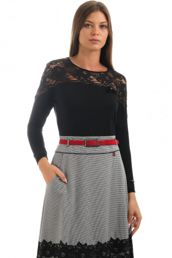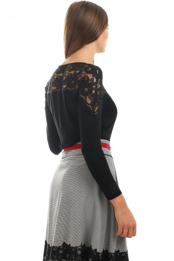 Black top with elegant zircon straps adds a striking and sophisticated look to your outfit...