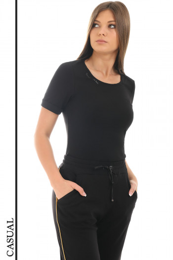 A modern black t-shirt made of viscose canvas will enrich your wardrobe with a modern and ...
