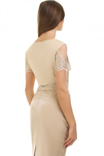 A mesh tunic with off-the-shoulder sleeves that allowes you to create a striking outfit.