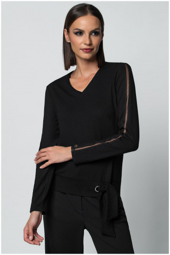 Black top with elegant zircon straps adds a striking and sophisticated look to your outfit...