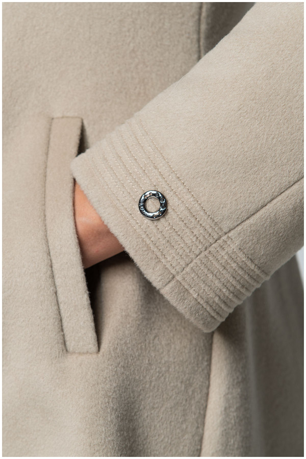 An elegant short coat with double-breasted fastening and a tie belt that can be worn in tw...