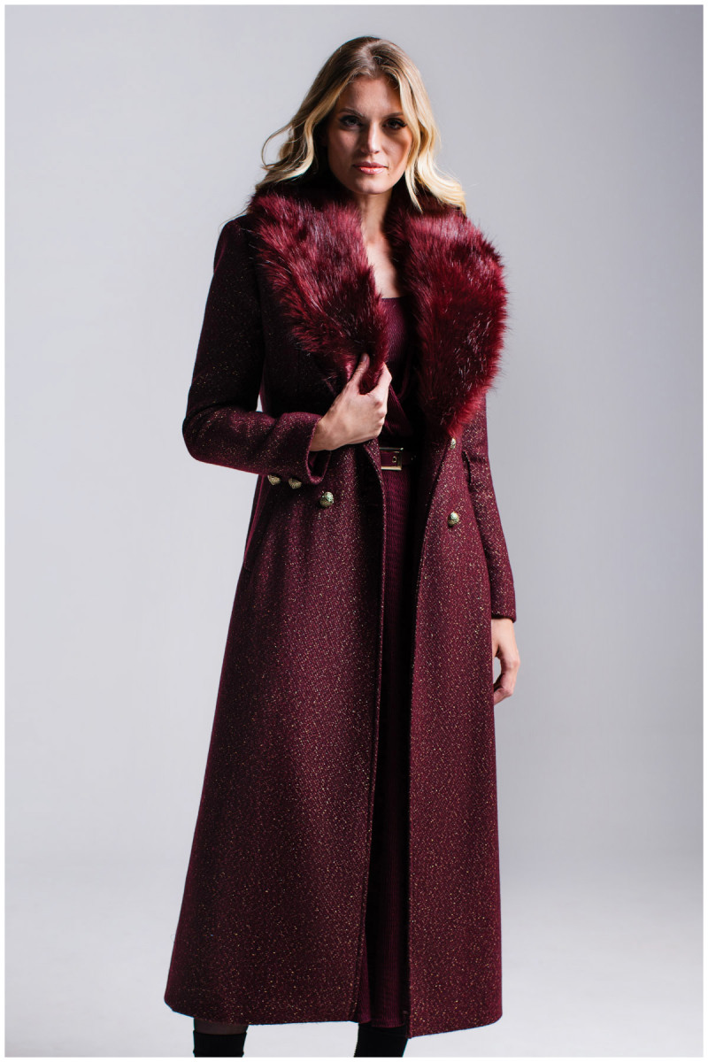 An elegant long burgundy shaded coat that you can wear in two ways.
