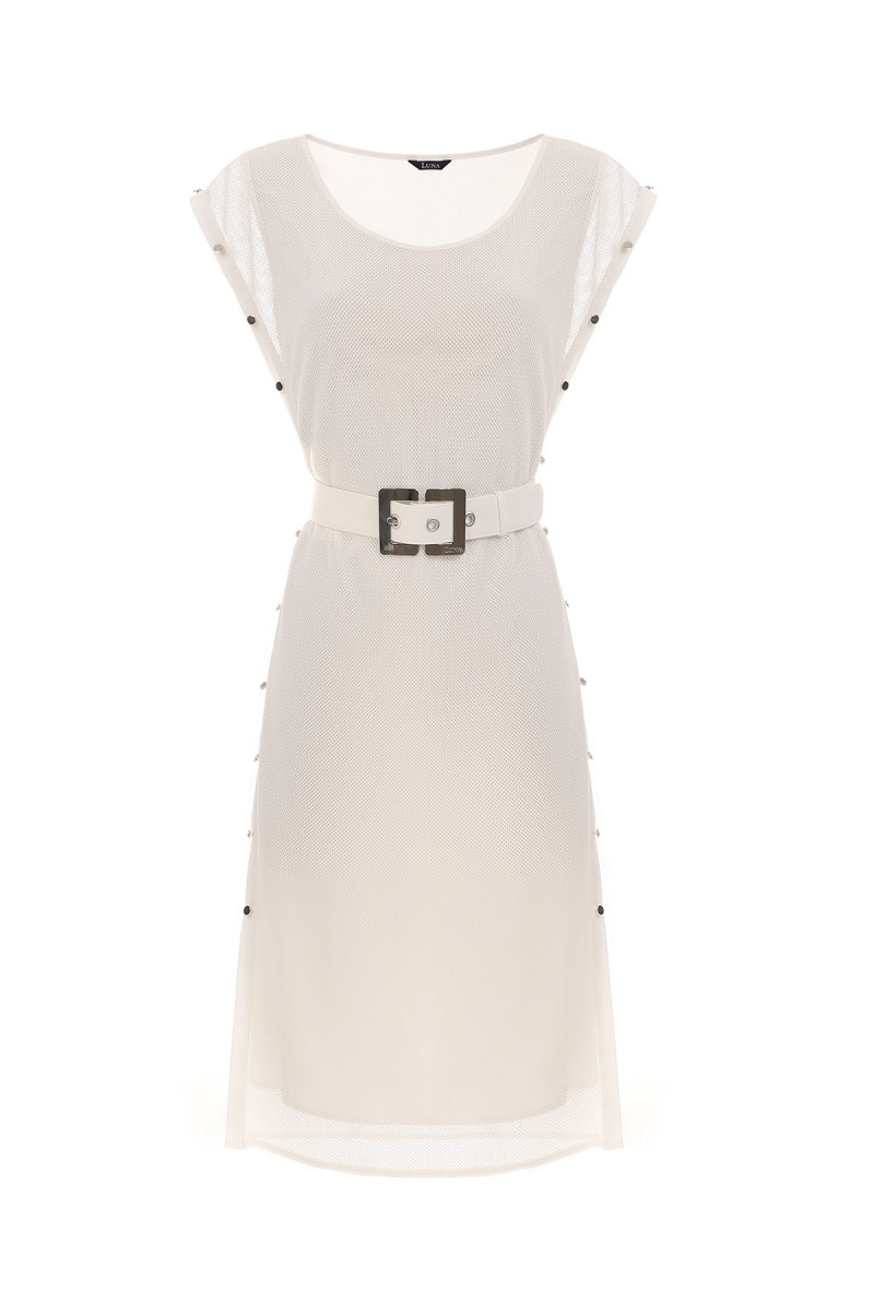Trendy dress for casual occasions. Enriched with decorative buttons on both sides. It is a great choice for a vacation whether you are going to the sea side or visiting a more urban destination because it is very comfortable and pleasant to wear. The belt is there to further emphasize the waist, and you can also take it off.