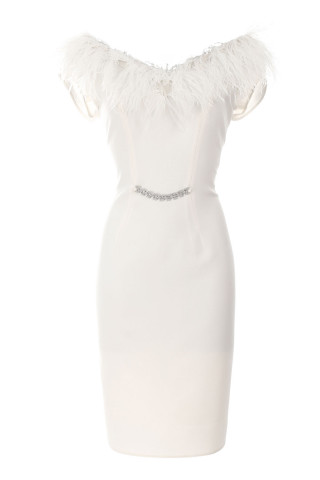 Elegant white dress with feathers that will leave a strong impression. When you remove the luxurious feathers, you get a small white dress suitable for all occasions.