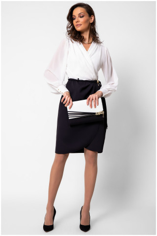 An elegant short wrap dress, perfect for special moments. It is enhanced with piping details around the neckline, while the belt accentuates the waist. The viscose lining ensures exceptional comfort and a pleasant feel.