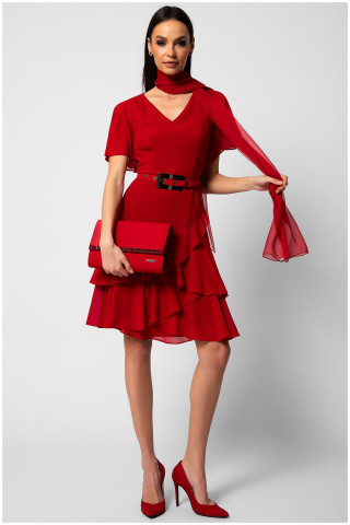 A feminine short dress with flounces. The viscose lining enhances comfort. The cut fits all body types perfectly and elegantly conceals any imperfections. Paired with statement jewelry and Luna shoes, you’ll achieve the perfect outfit for any occasion.