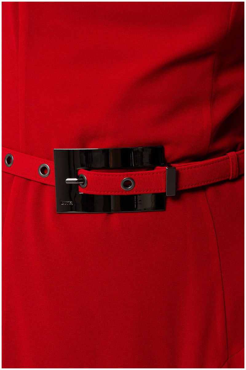 Elegant red dress with 3/4 sleeves, designed to follow the body's silhouette and highlight...