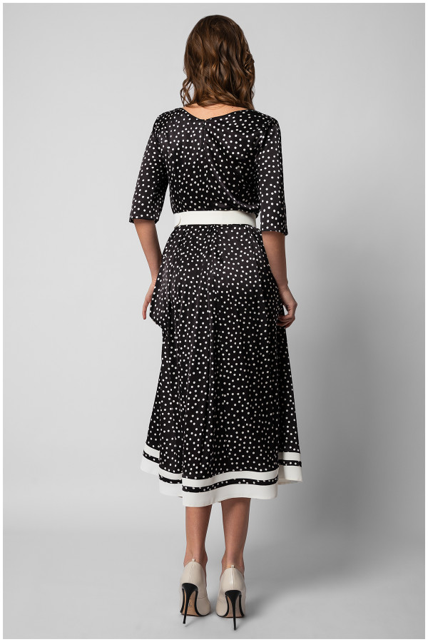 A midi dress with polka dots and 3/4 sleeves. The viscose fabric makes it very comfortable to wear. The cut fits all body types perfectly and effectively conceals any imperfections. Pair it with stunning jewelry and Luna shoes to create the perfect outfit for any occasion.