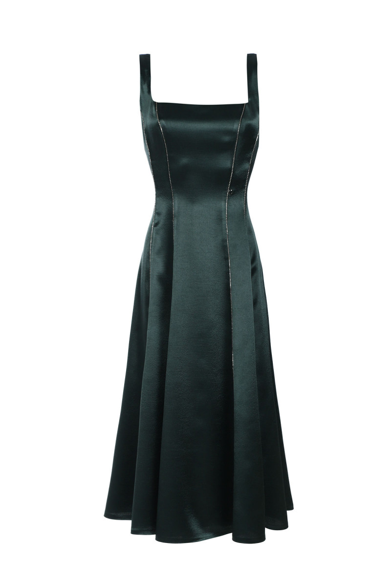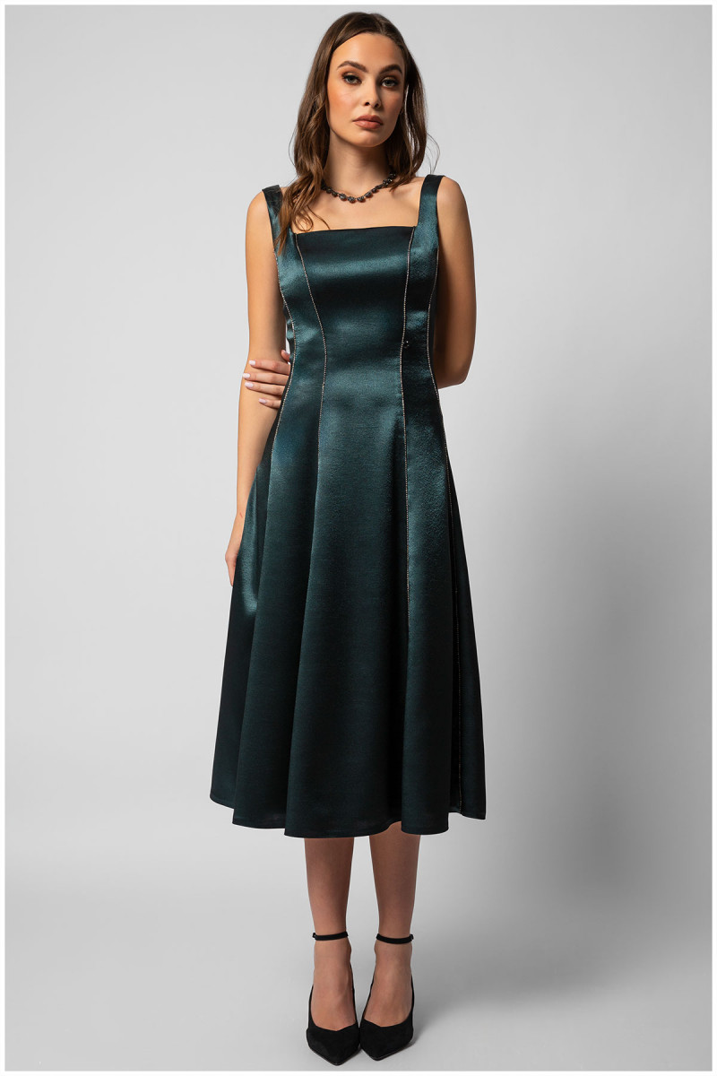 Elegant green midi dress with straps.