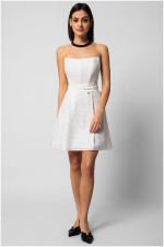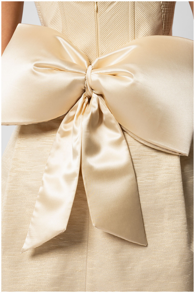 A striking beige mini corset dress that follows the body’s shape to the waist, then flares out, creating the illusion of an hourglass figure. The design is enhanced with a large, elegant bow at the back, which can be removed for a more minimalist look. It pairs perfectly with Luna jewelry, a handbag, and shoes for a complete stylish ensemble.