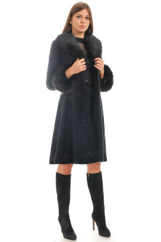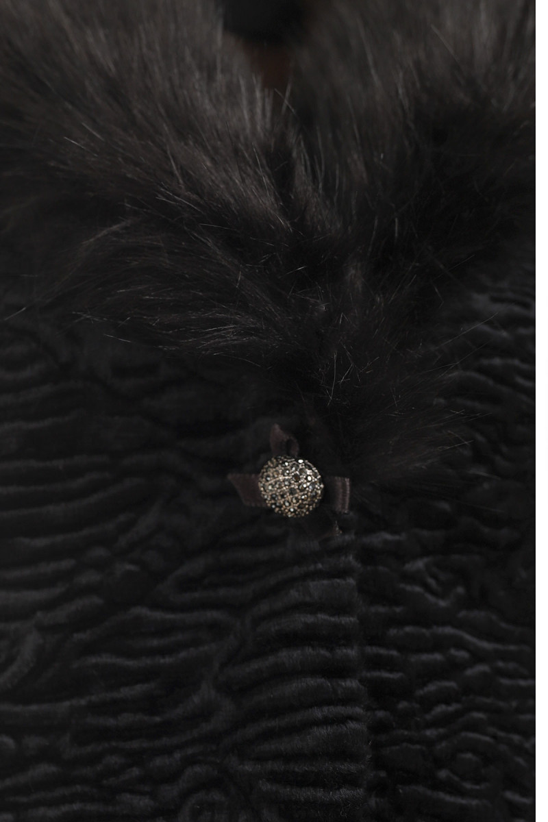 An exclusive black fur coat that will take your style to the next level. It is made of viscose faux fur with astragan embossed texture. The wide cut is suitable for any figure and is an excellent choice if you wear several layers of clothing. The luxurious faux fur collar as well as the details on the hem make this model unique.