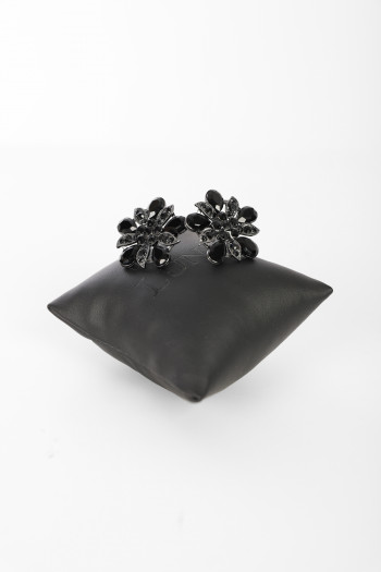 Elegant flower-shaped earrings adorned with crystals add a sophisticated sparkle and a tou...