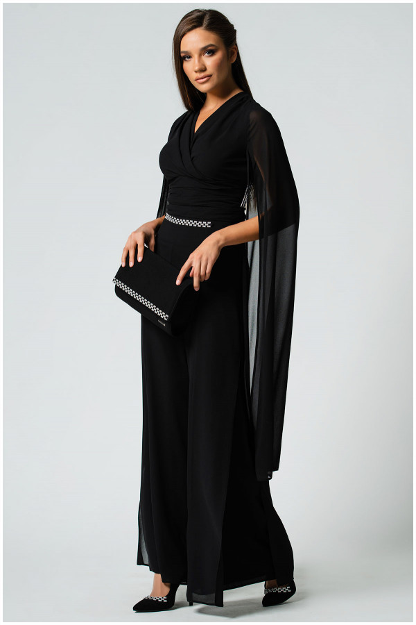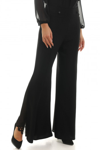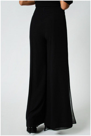Wide, double-layered trousers made of lightweight material are an excellent choice when you want to look elegant. They suit all body types and visually elongate your figure. The side slit along the upper layer of the pants adds a special charm to this model.