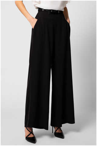 Elegant wide-leg black pants. This model visually elongates the silhouette, making it suitable for all body types. Easily paired with pieces from the new collection.