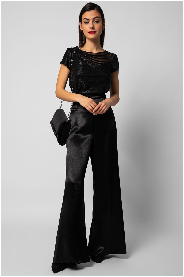 Elegant high-waisted black pants are a perfect choice when you want to look sophisticated.